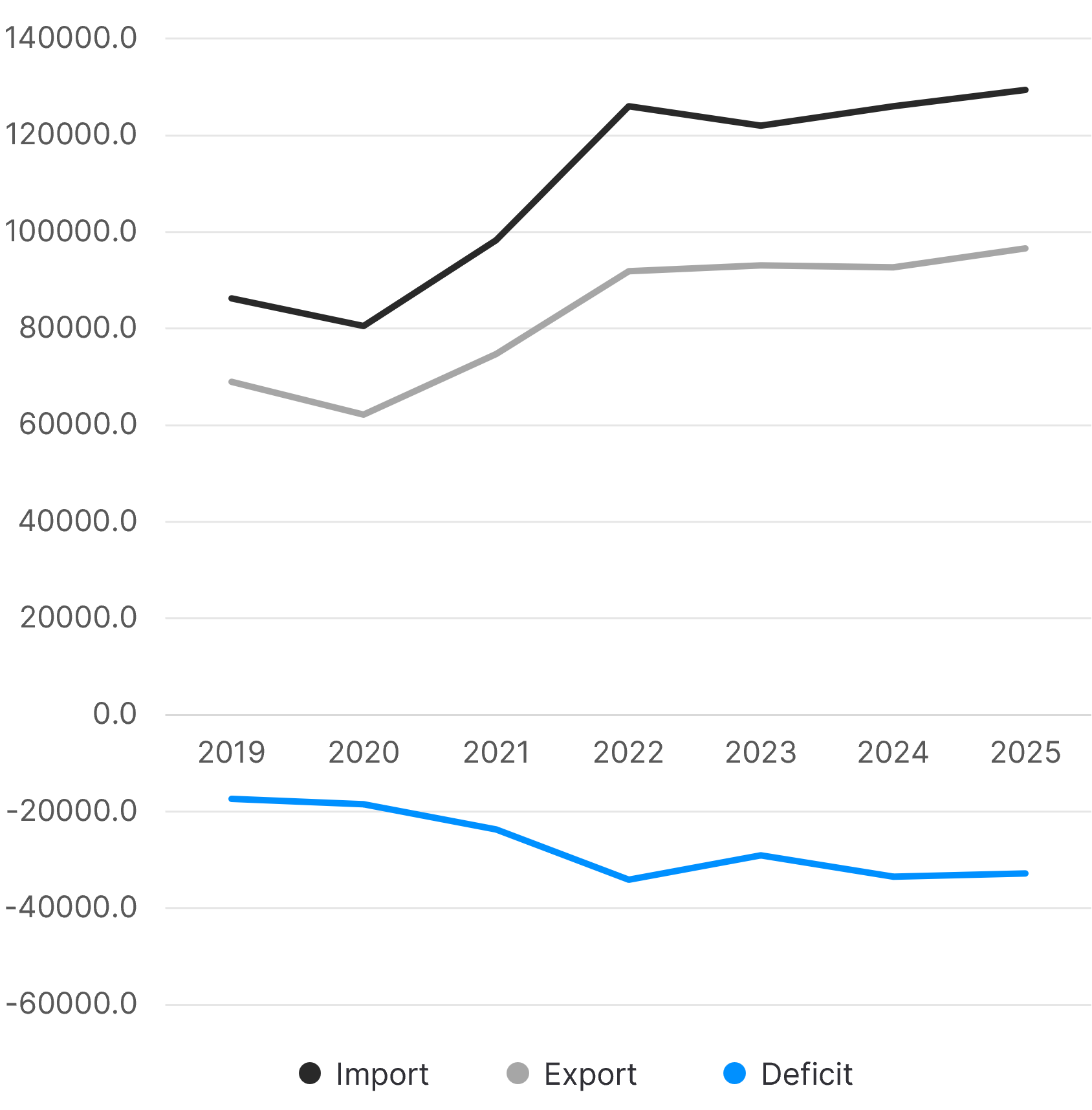 Apare atunci când valoarea importurilor depășește valoarea exporturilor. Nu este, prin definiție, o problemă pe termen scurt, dar devine una structurală atunci când persistă ani la rând și este alimentată de sectoare-cheie.